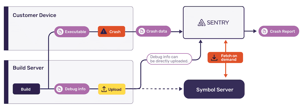 The most straightforward way to provide Sentry with debug information file is to upload them using sentry-cli. Depending on your workflow, you may want to upload as part of your build pipeline or when deploying and publishing your application: